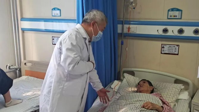 在住院部查房时,他深入肿瘤内科病房,结合具体病例与医护人员展开研讨,就疑难病例的诊断和化疗方案的优化提出建议,并分享精准医疗的实践经验。