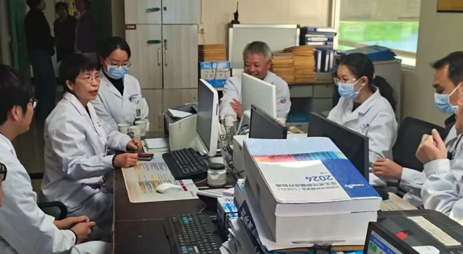 在住院部查房时,他深入肿瘤内科病房,结合具体病例与医护人员展开研讨,就疑难病例的诊断和化疗方案的优化提出建议,并分享精准医疗的实践经验。