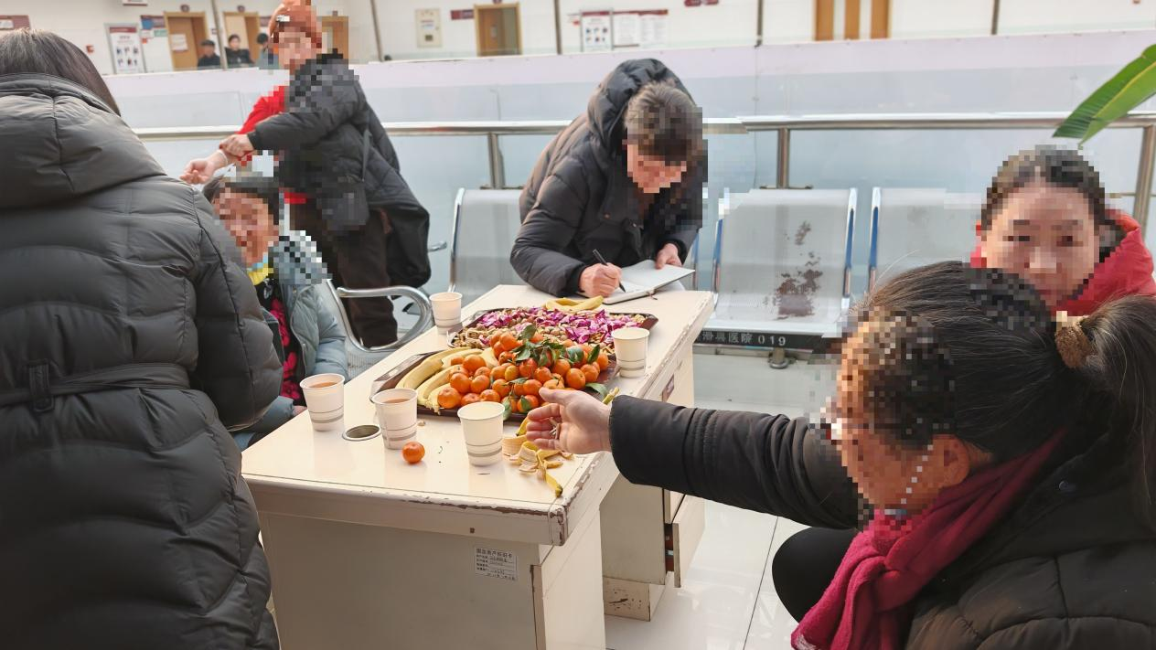在门诊二楼举办“情暖元旦”门诊患者座谈会。活动现场氛围温馨,医院为前来参加的患者及家属准备了瓜子、坚果、糖果、水果等暖心小食,让大家在轻松愉快的氛围中交流互动。